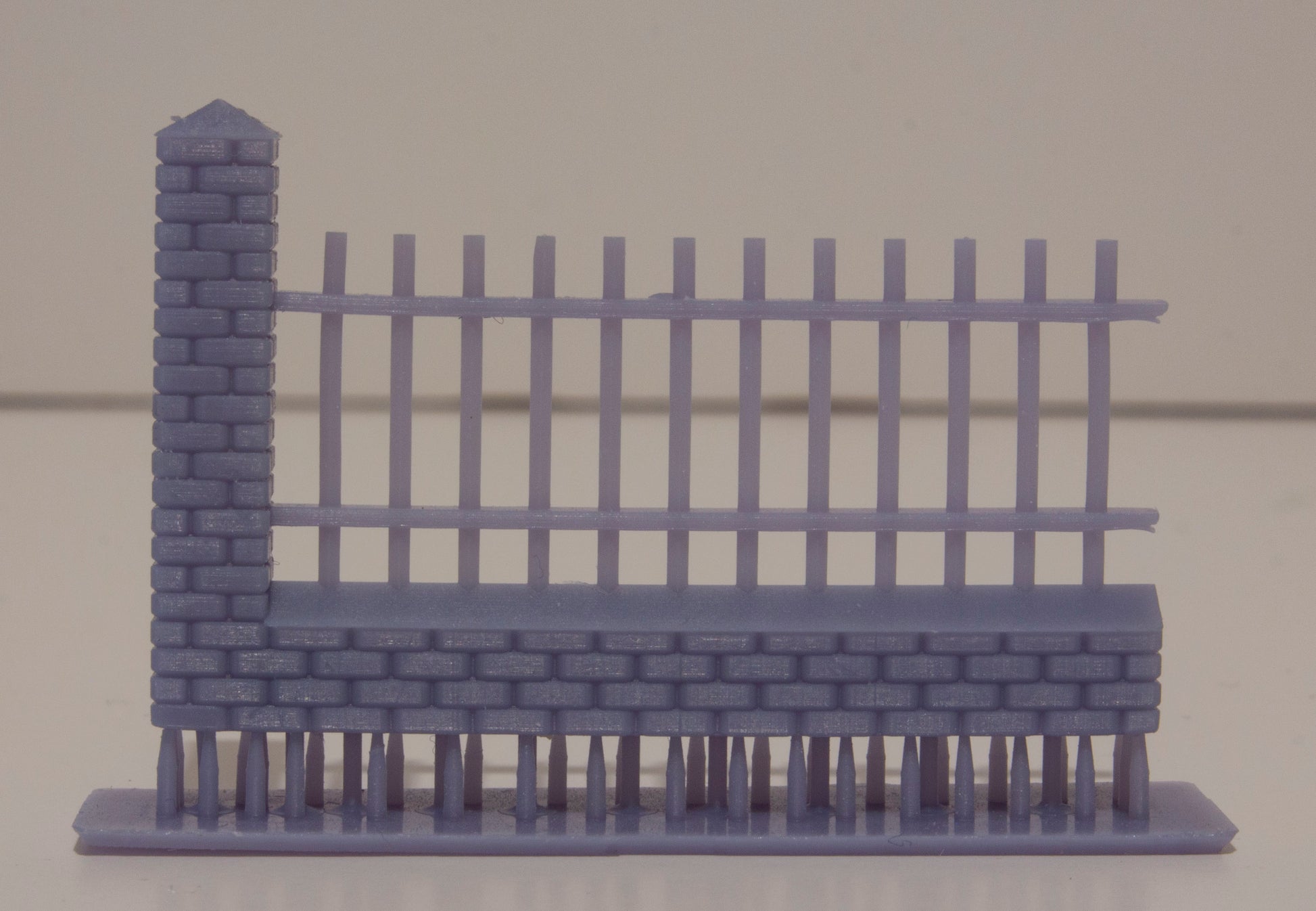 All parts are mounted on supports which make it easy to paint although touching up may be required after removal from the supports. With the exception of the driveway gates the walling parts are hollow so could be removed from the supports and then painted if you insert a cocktail stick of coffee stirer up inside the posts. In most cases it is easy to just bend the supports to remove them, if they are fixed hard then it is best to cut them using side nippers. Cleanin the bottom surface cam be done with a jewelers file or nail file/emery board.